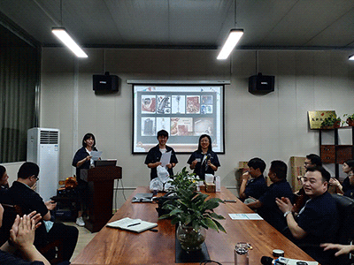 會議期間員工針對公司愿景、價值觀、人才觀發表自己的理解,并根據實際工作舉例說明。