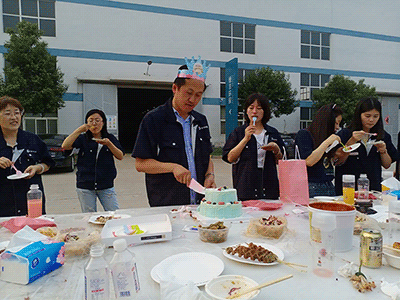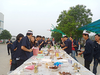 5點整,燭光晚餐環節,全體成員來到戶外進行自助燒烤,對過生日的員工慶祝生日,大家齊動手、共聚餐。