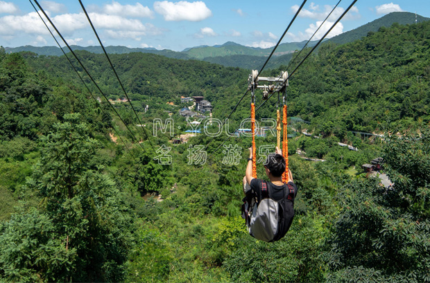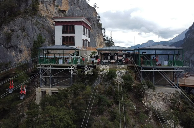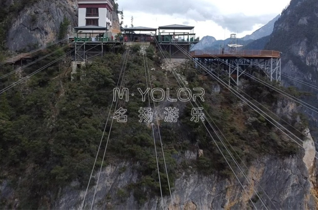 滑索屬于極限運動的一種。該項目投資少、見效快、經濟效益可觀,素有“空中印鈔機”之稱?;鬟\動充滿速度感和刺激感,穿戴好安全吊具的乘客,懸掛在滑動小車下,以斜拉的兩根鋼絲繩為軌道,借助高差、利用重力,從高處的發射臺順勢而下,以較高的速度完成滑翔??奢p松地跨越草地、湖泊、河流、峽谷等地方,使人在有驚無險的歡愉中盡情的陶醉于大自然的迷人美景之中,給予了人們親近大自然、忘我地融入大自然的驚險刺激和超常體驗,既扣人心弦又安全可靠。