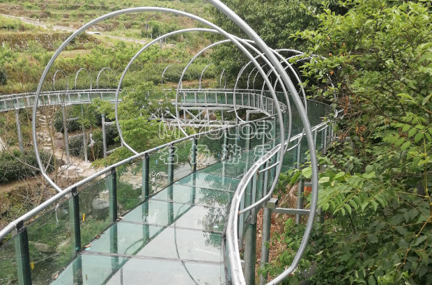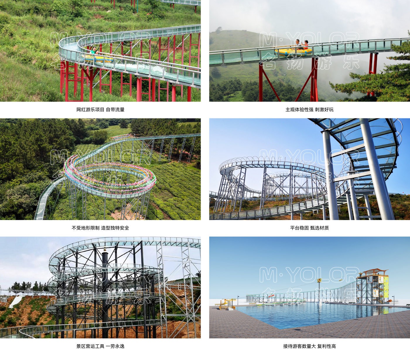 現代化的玻璃與自然生態的山林、靜謐的山體形成極為鮮明的對比。玻璃滑道巧妙的利用自然山川的優美環境,又較好的保護了山地和植被,是山地旅游景區中最靚麗的風景線。