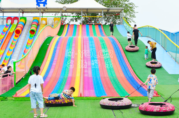 網(wǎng)紅滑世界樂園是由八大項目組合而成。一是七彩滑道坐在輪胎坐墊上從高處一滑而下,二是攀巖體驗徒手攀爬登山的樂趣。三是S彎滑道-左右搖擺一沖而下。四是輪胎坡步步為營,一步一個圓圈。五是圓筒滑道-在一個小小圓筒里感受滑道的魅力。六是波浪滑道-好朋友并排而下,體驗起起伏伏的滑行樂趣。七是攀爬網(wǎng)一手腳并用地攀登。八是登山繩體驗─根繩子登山的驚險和樂趣。無動力滑世界一經(jīng)推出就深得游玩者的喜愛。規(guī)格可以根據(jù)場地定做。