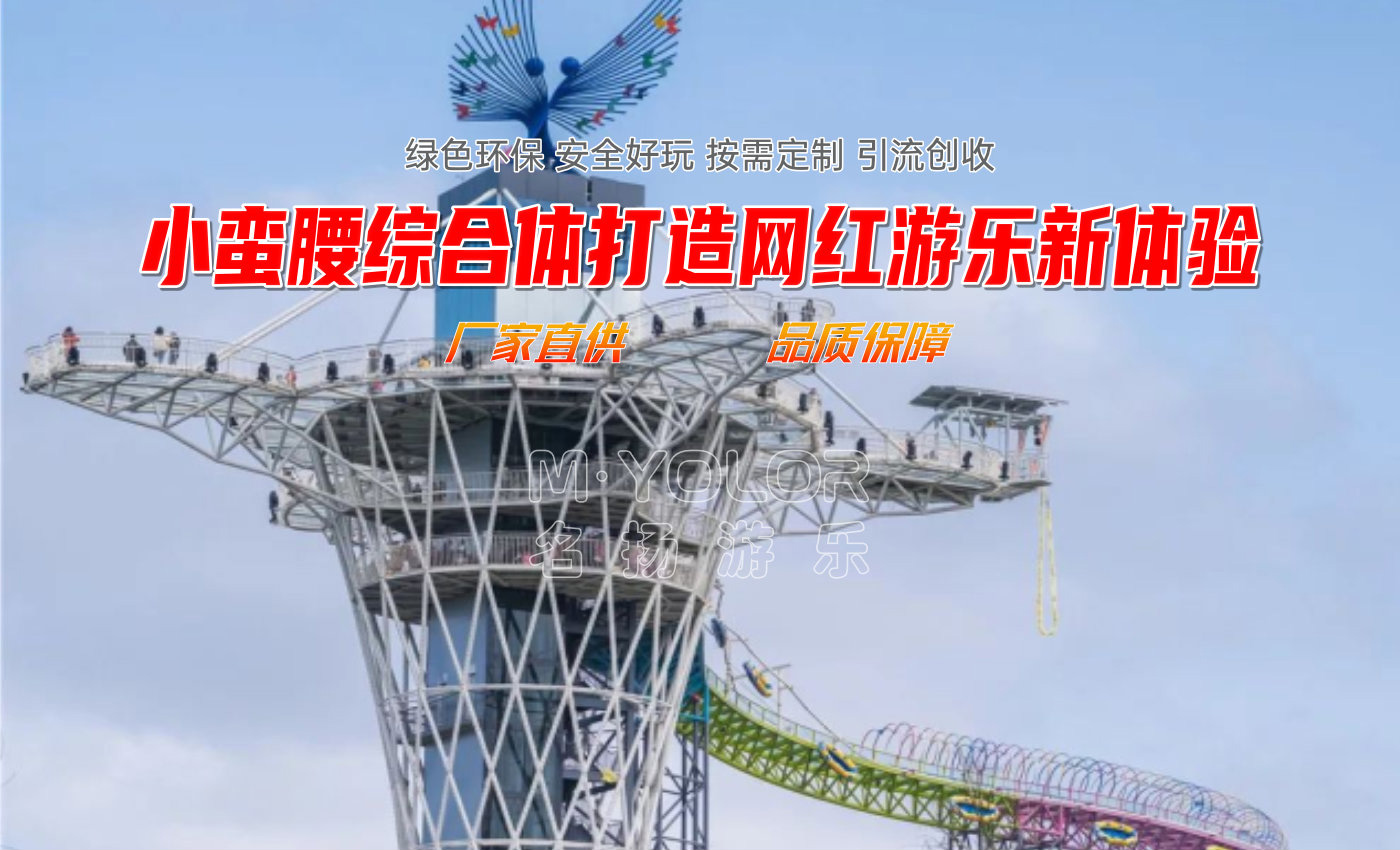 小蠻腰挑戰塔將各種無動力游樂項目集合在一個塔架上包括:叢林穿越、高空拓展、滑道、高空秋千、速降、滑索、攀巖等;項目一次性容納隊伍多,挑戰項目多,能充分展示游客的挑戰價值,塔頂還有玻璃觀景平臺,讓游客體會“一覽眾山小”的愜意!